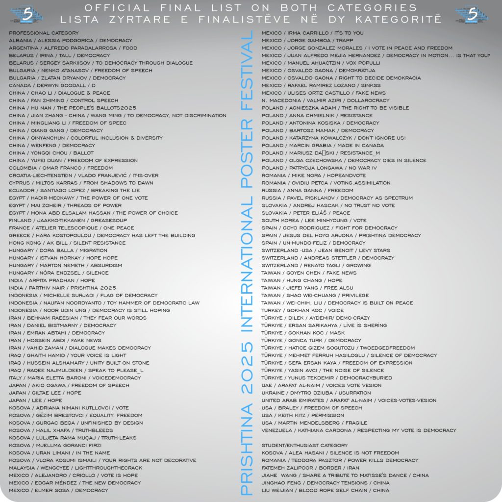 Fifth Edition of Prishtina 2025 International Poster Festival / Bez kategorii / By Mariusz Dański Dzisiaj 14 dzień listopada… wieczorem dotarła do mnie informacja z Prisztiny (Republika Kosova) o tym, że mój plakat został zakwalifikowany do wystawy Fifth Edition of Prishtina 2025 International Poster Festival Cóż za piękny listopad…